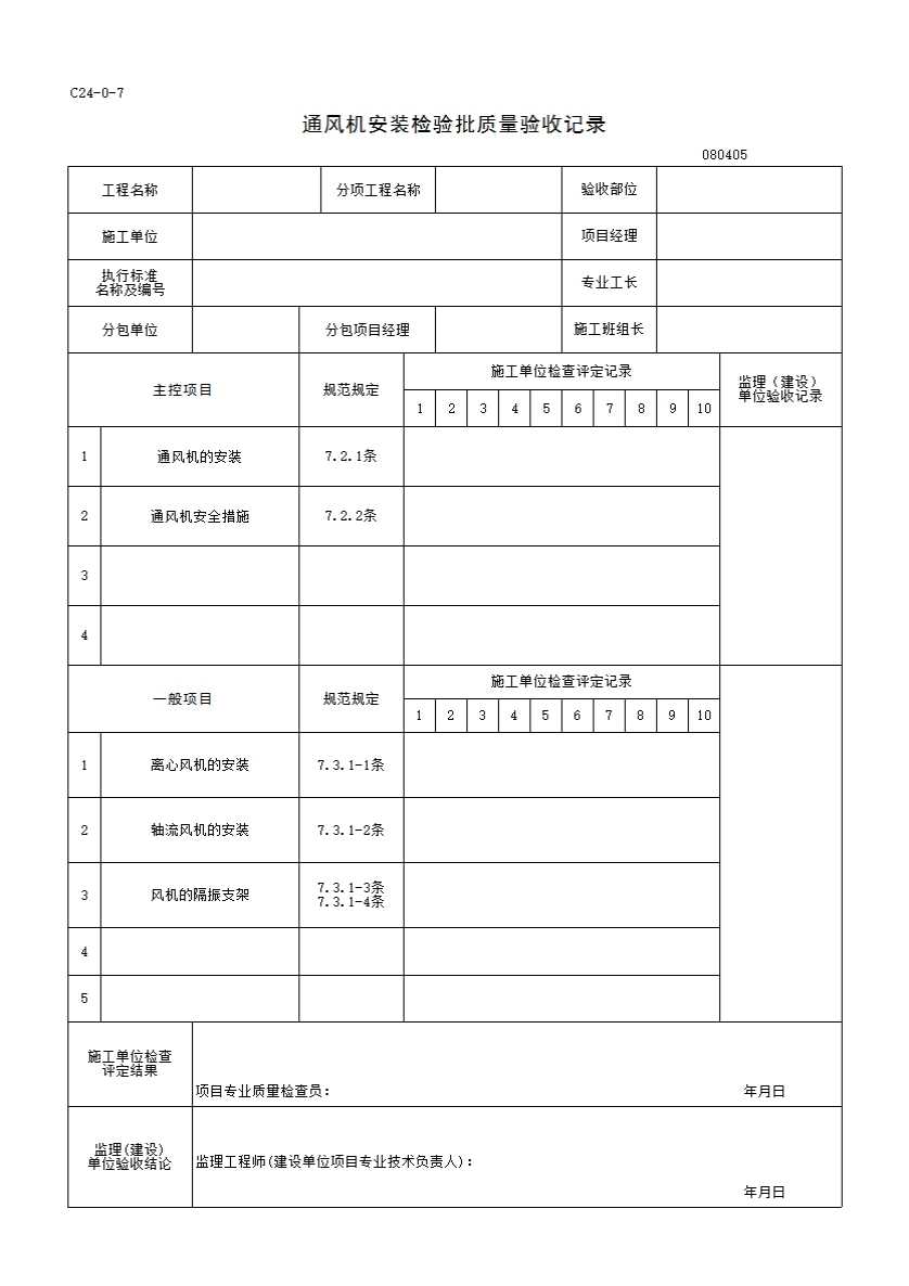 表格名称:C24-0-7通风机安装检验批质量验收记录