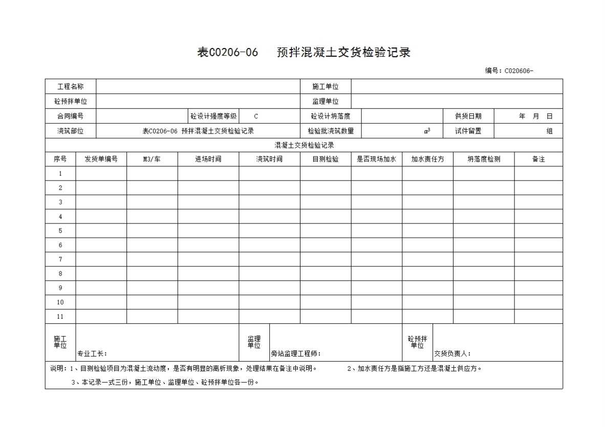 表C0206-06 预拌混凝土交货检验记录