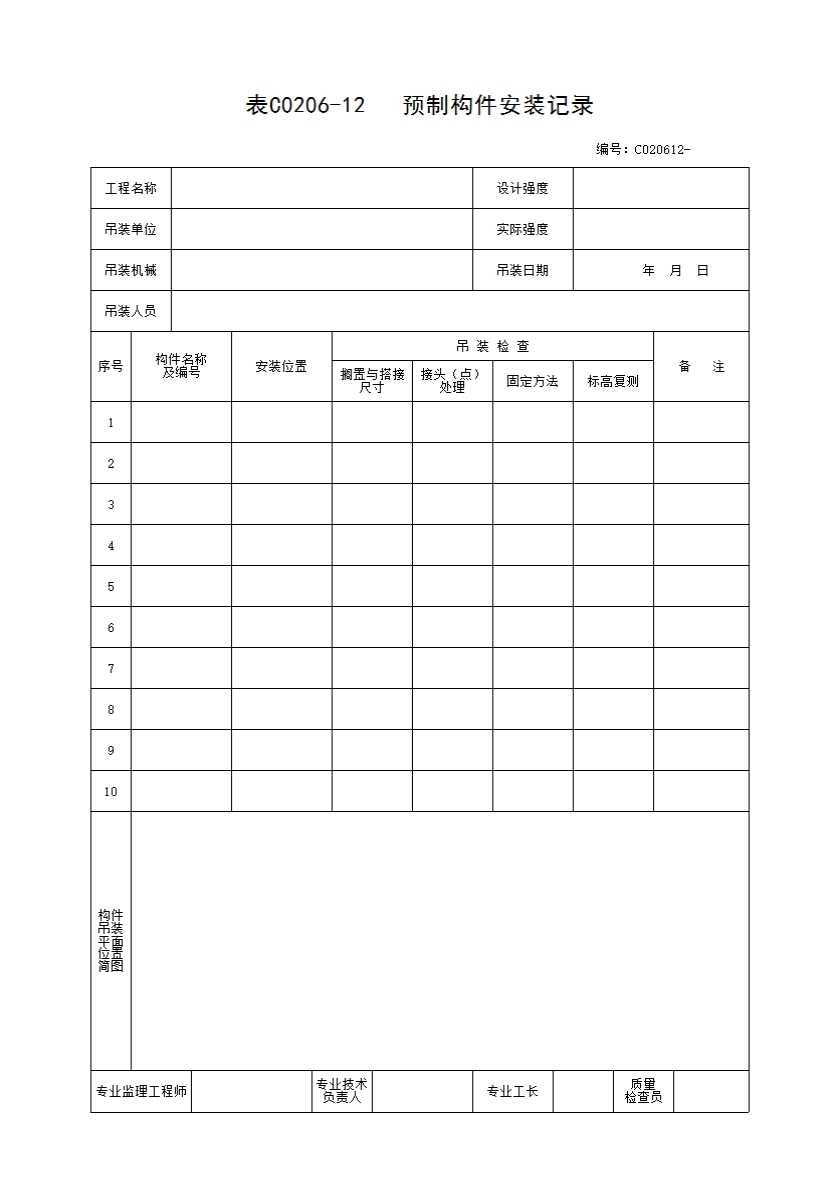 表格名称:表C0206-12 预制构件安装记录