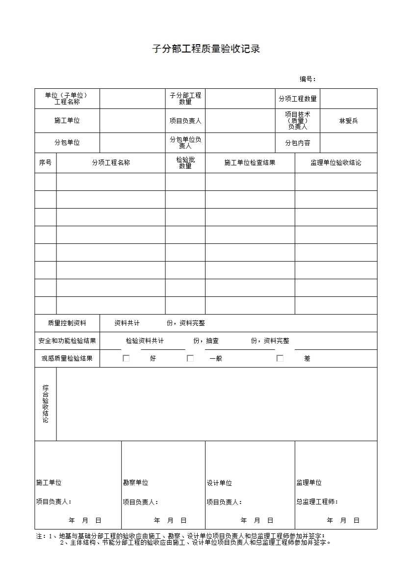 表格名称:____子分部工程质量验收记录