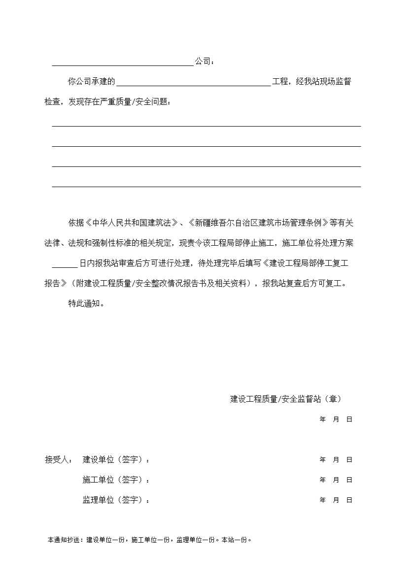 表格名称:A-6 建设工程局部停工通知书