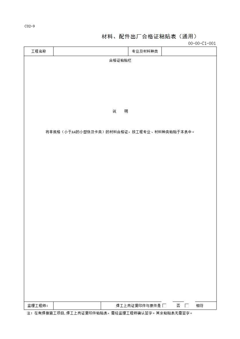 表格名称:C02-9 ____材料、配件出厂合格证粘贴表(通用)