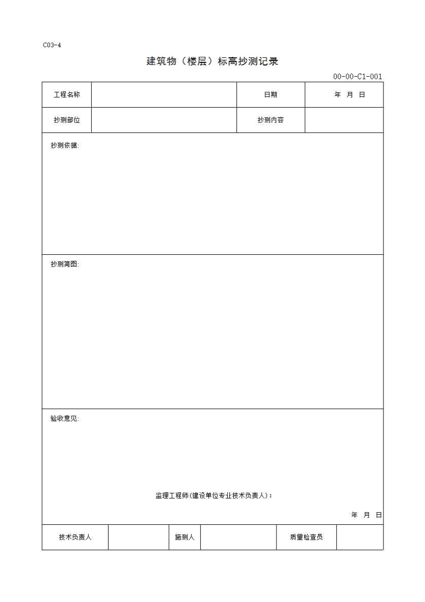 表格名称:C03-4 建筑物(楼层)标高抄测记录