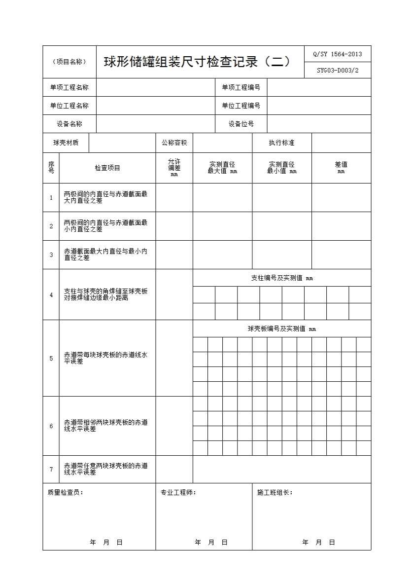 SYG03-D003-2 球形储罐组装尺寸检查记录(二)