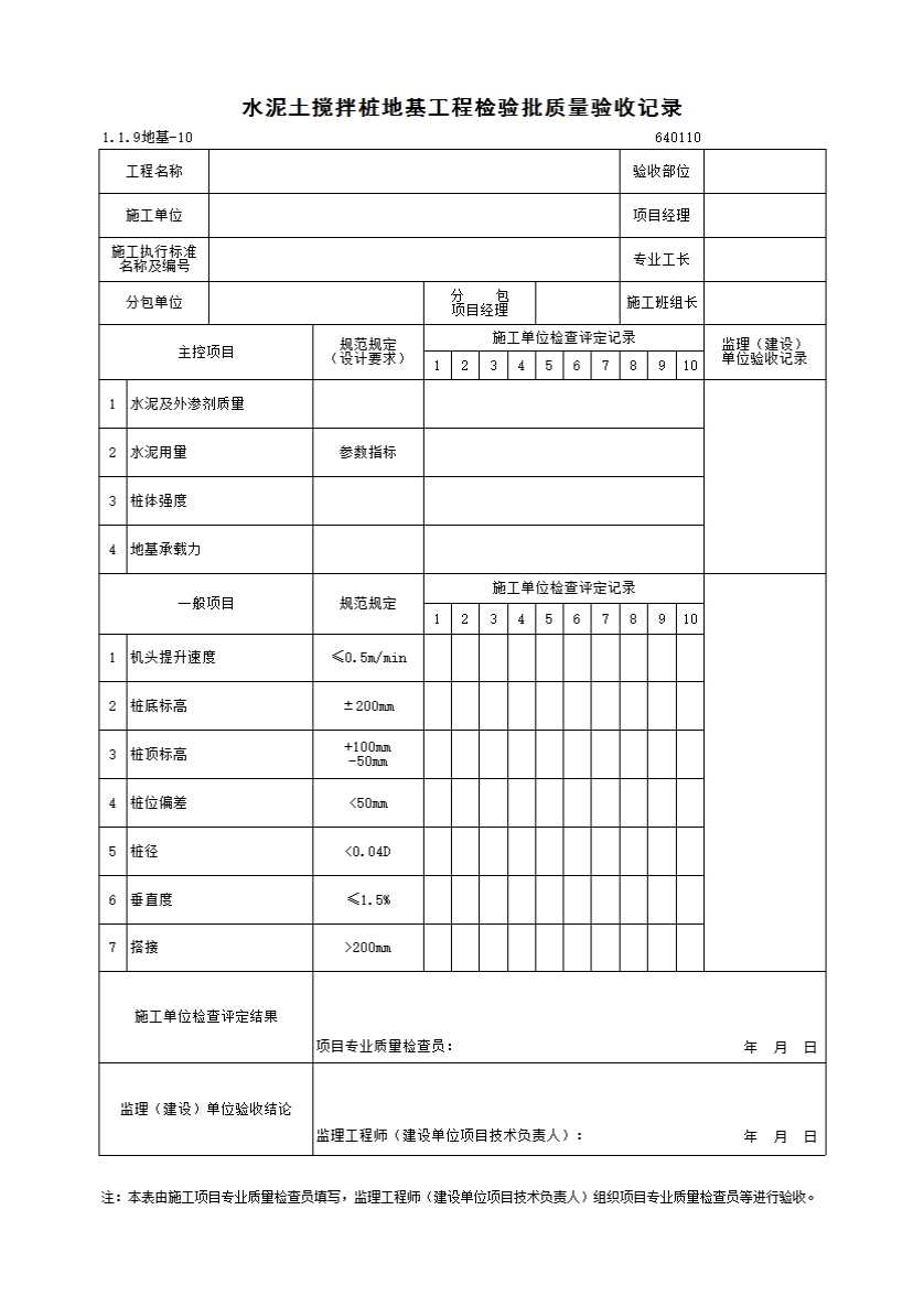 表格名称:1-1-9地基-10 水泥土搅拌桩地基工程检验批质量验收记录