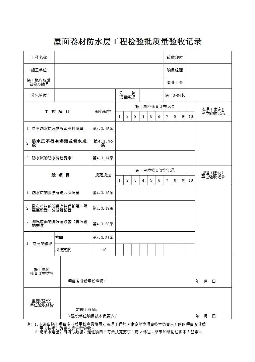 表格名称:屋面卷材防水层工程检验批质量验收记录