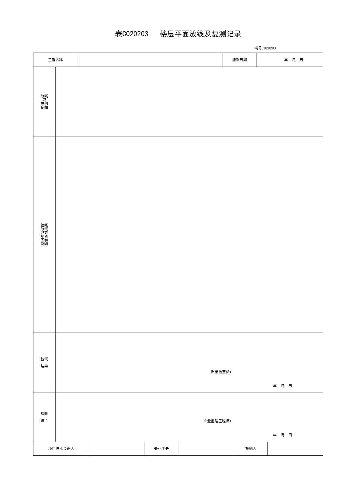 表格名称:C020203 楼层平面放线及复测记录【A3打印】