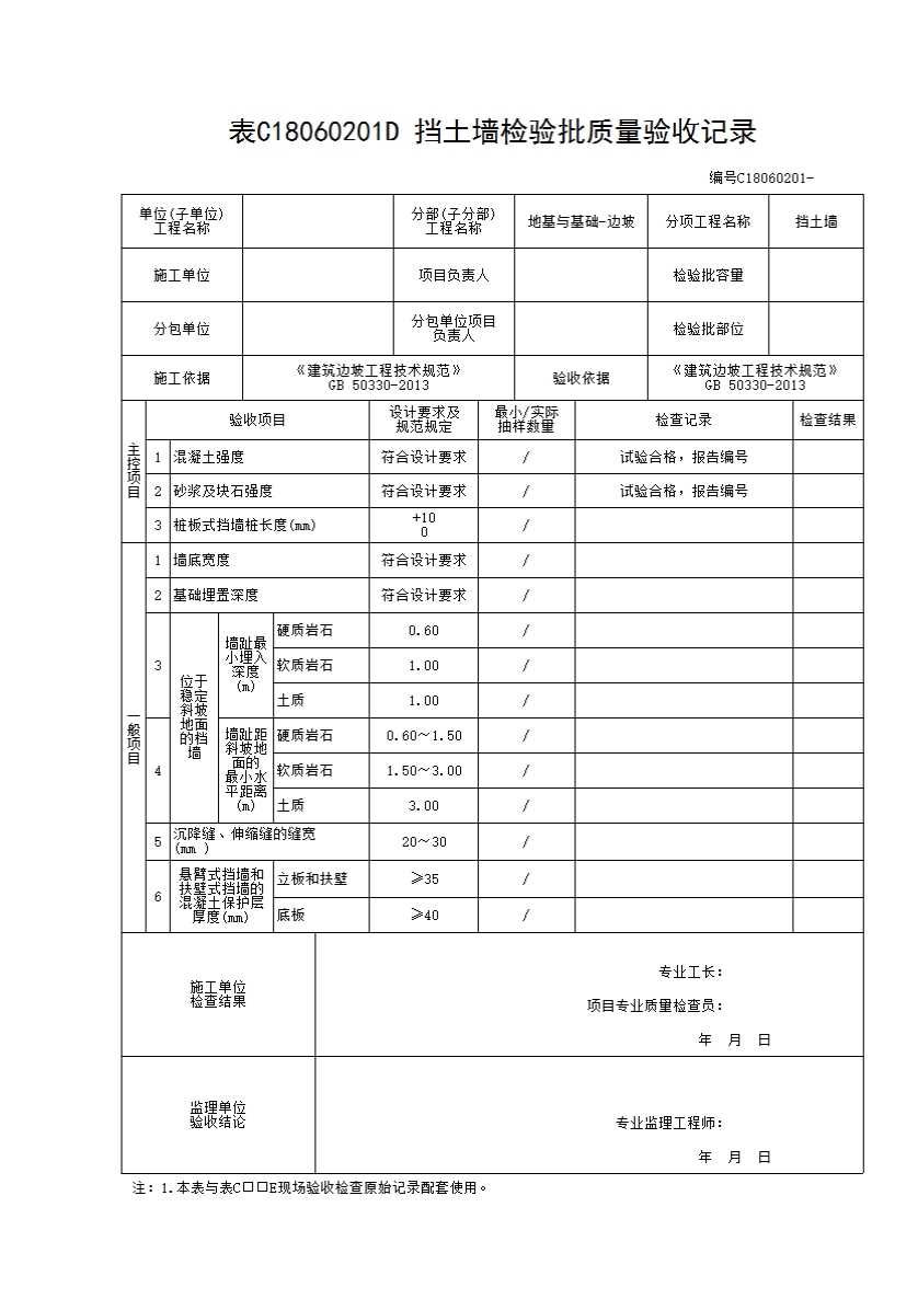 2砂浆及块石强度:符合设计要求。设计值应填入表格内空白处。按规定抽样做试件,检查试件强度报告。