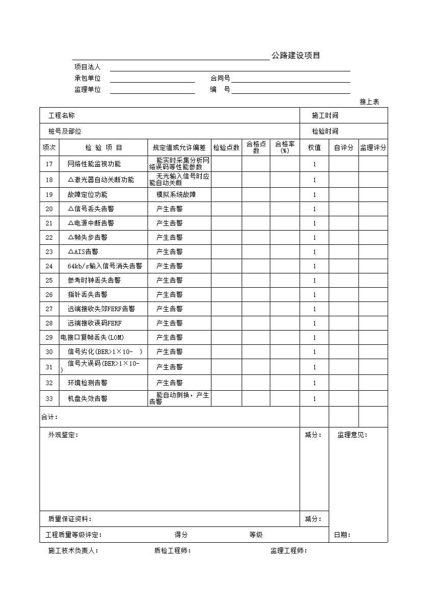 表格名称:C-228 光纤数字传输系统质量检验评定表