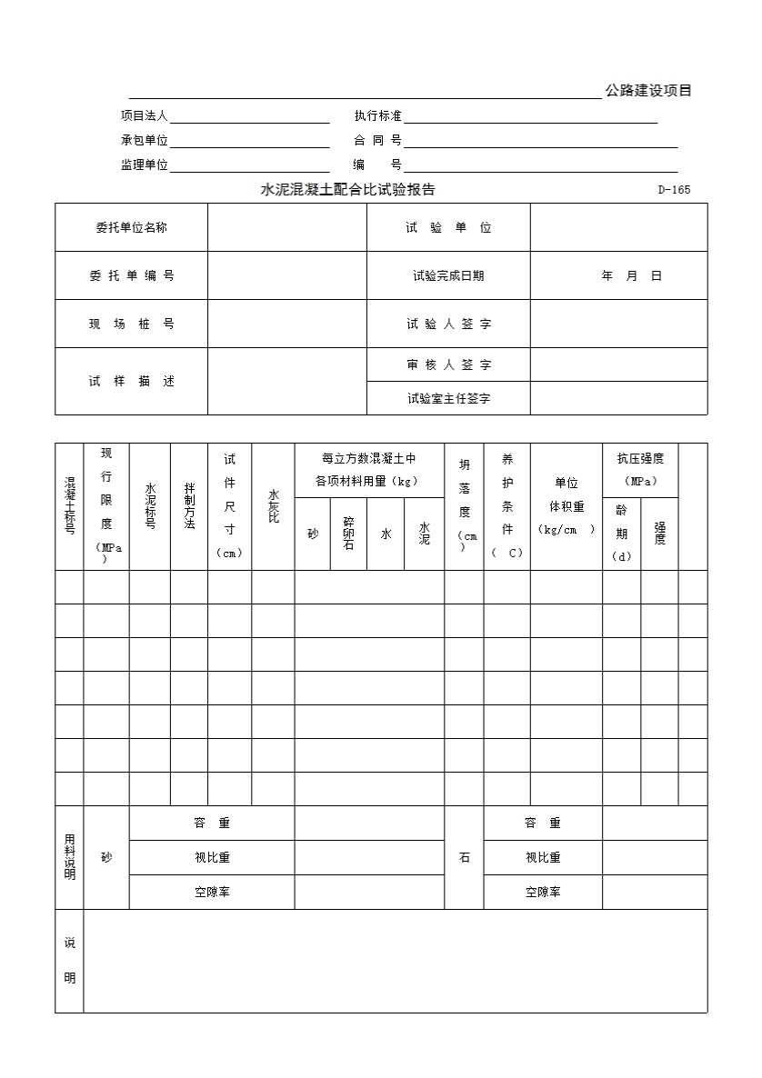 公路工程水泥混凝土试验规程用表(JTJ053-94)