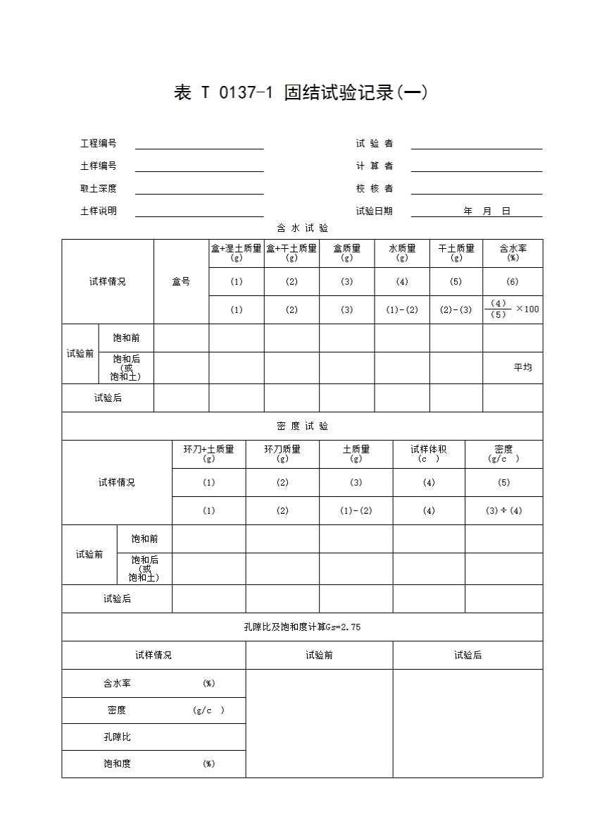 表T0137-1 固结试验记录(一)