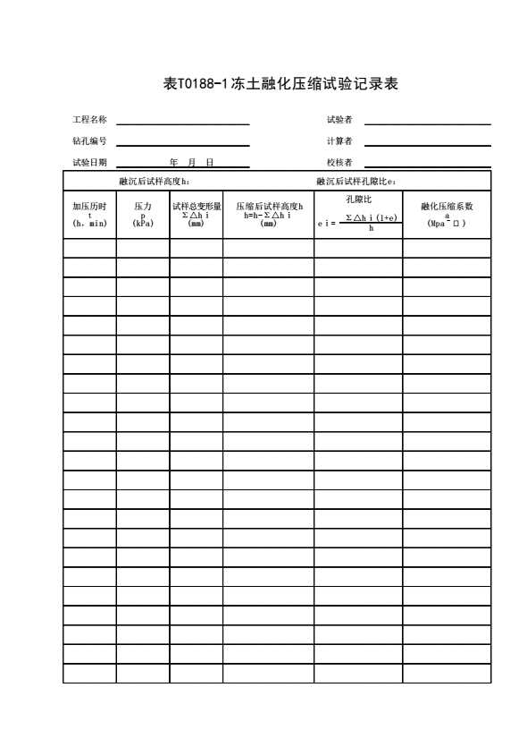表格名称:表T0188-1 冻土融化压缩试验记录表