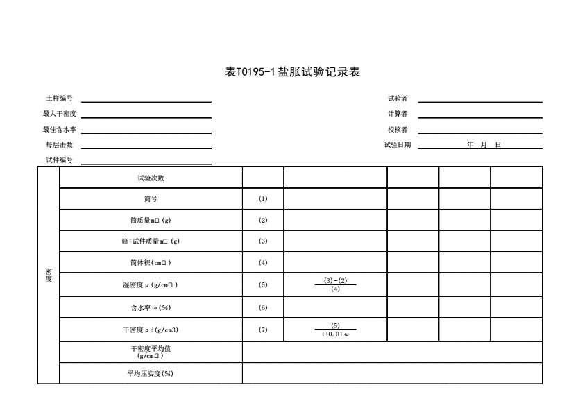 表T0195-1 盐胀试验记录表
