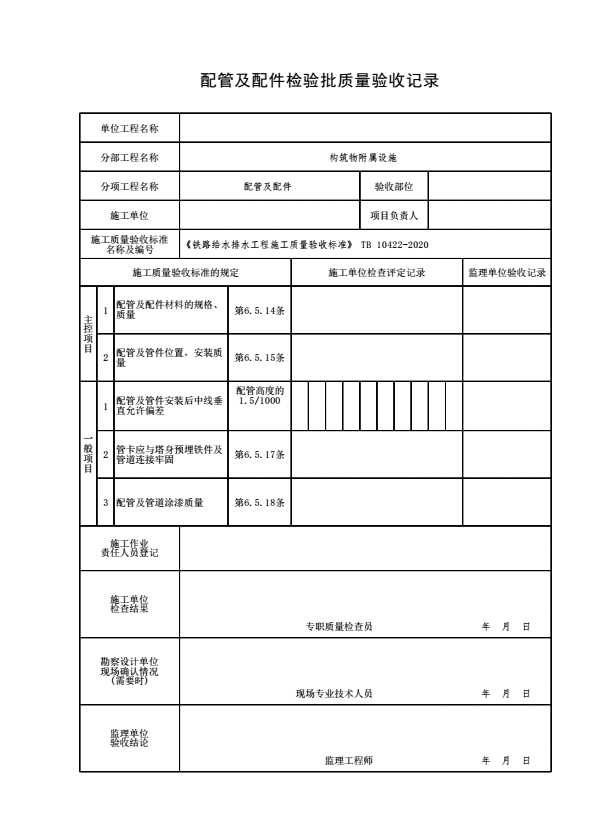 《铁路给水排水工程施工质量验收标准》(TB 10422-2020)