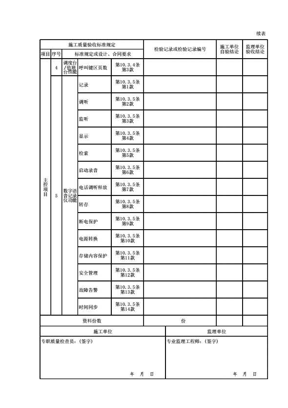07060201 有线调度设备单机功能性能检验批质量验收记录表