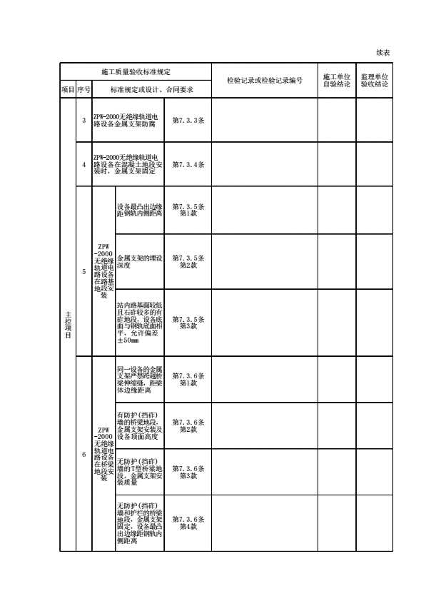 表格名称:08030402 轨道电路室外设备检验批质量验收记录表
