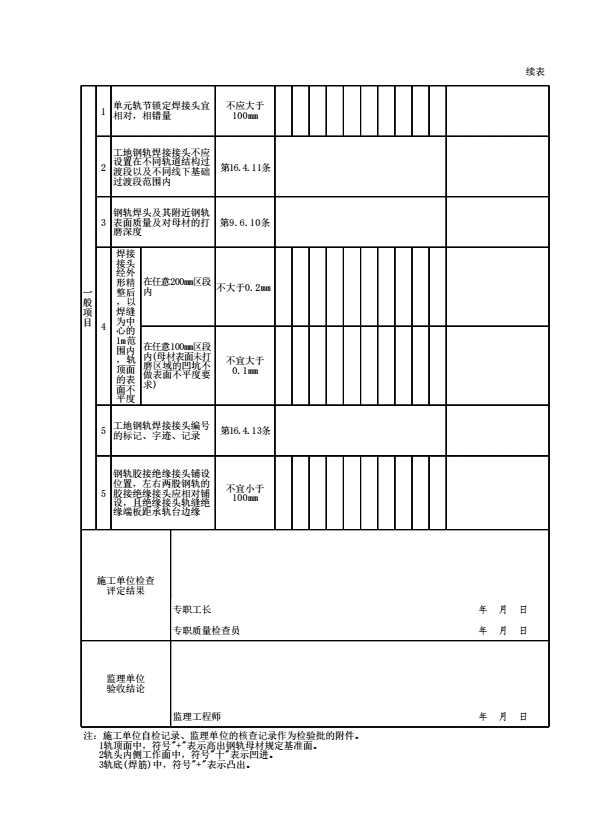 表格名称:G01011203 工地钢轨焊接检验批质量验收记录