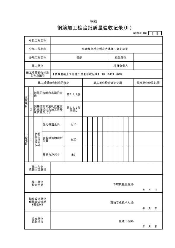 表格名称:G03011402 【钢筋】钢筋加工检验批质量验收记录(Ⅱ)