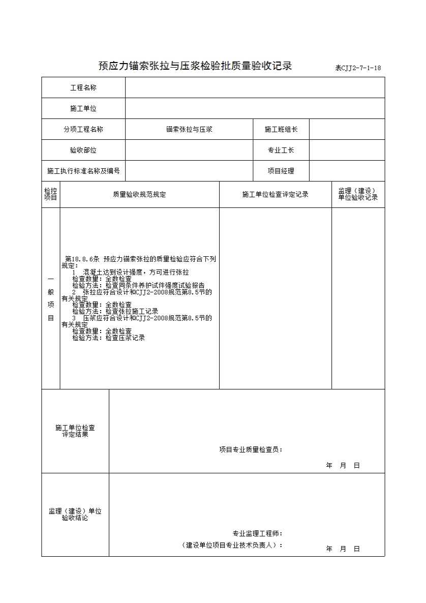 表CJJ2-7-1-18 预应力锚索张拉与压浆检验批质量验收记录