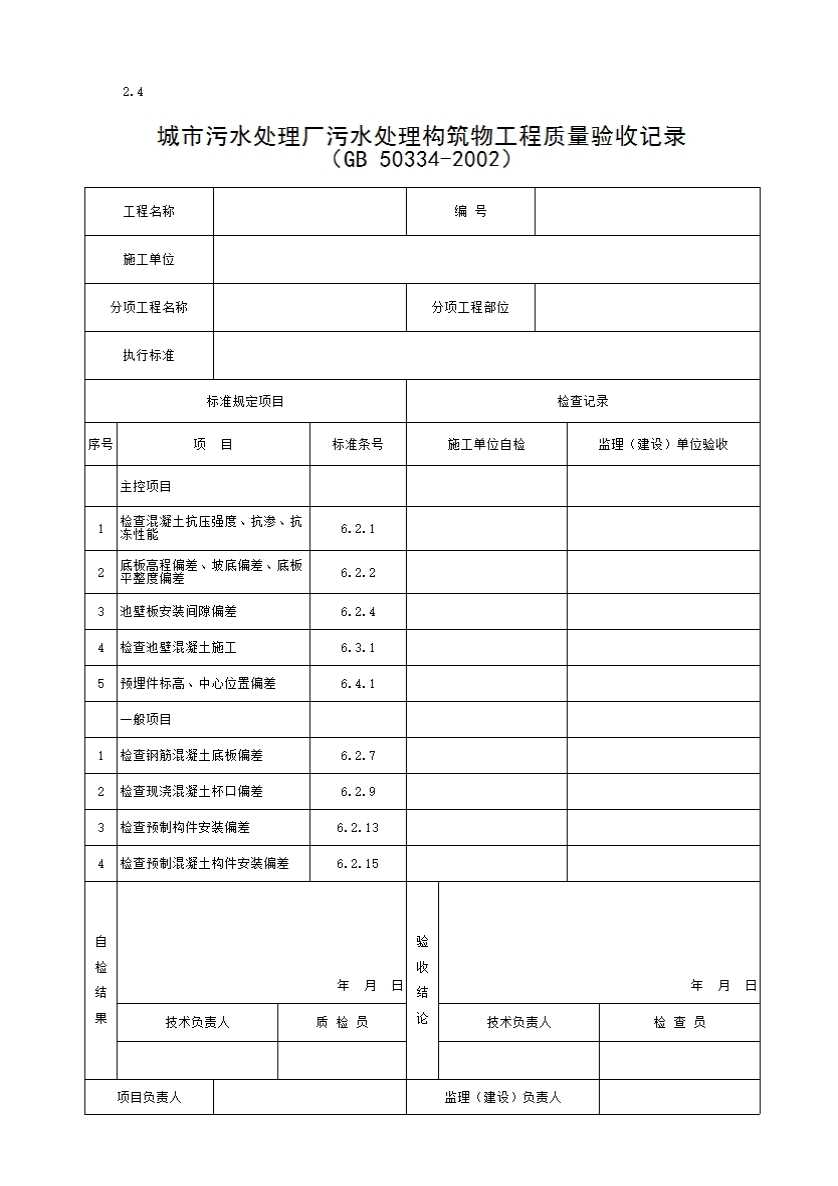 2.4 城市污水处理厂污水处理构筑物工程质量验收记录