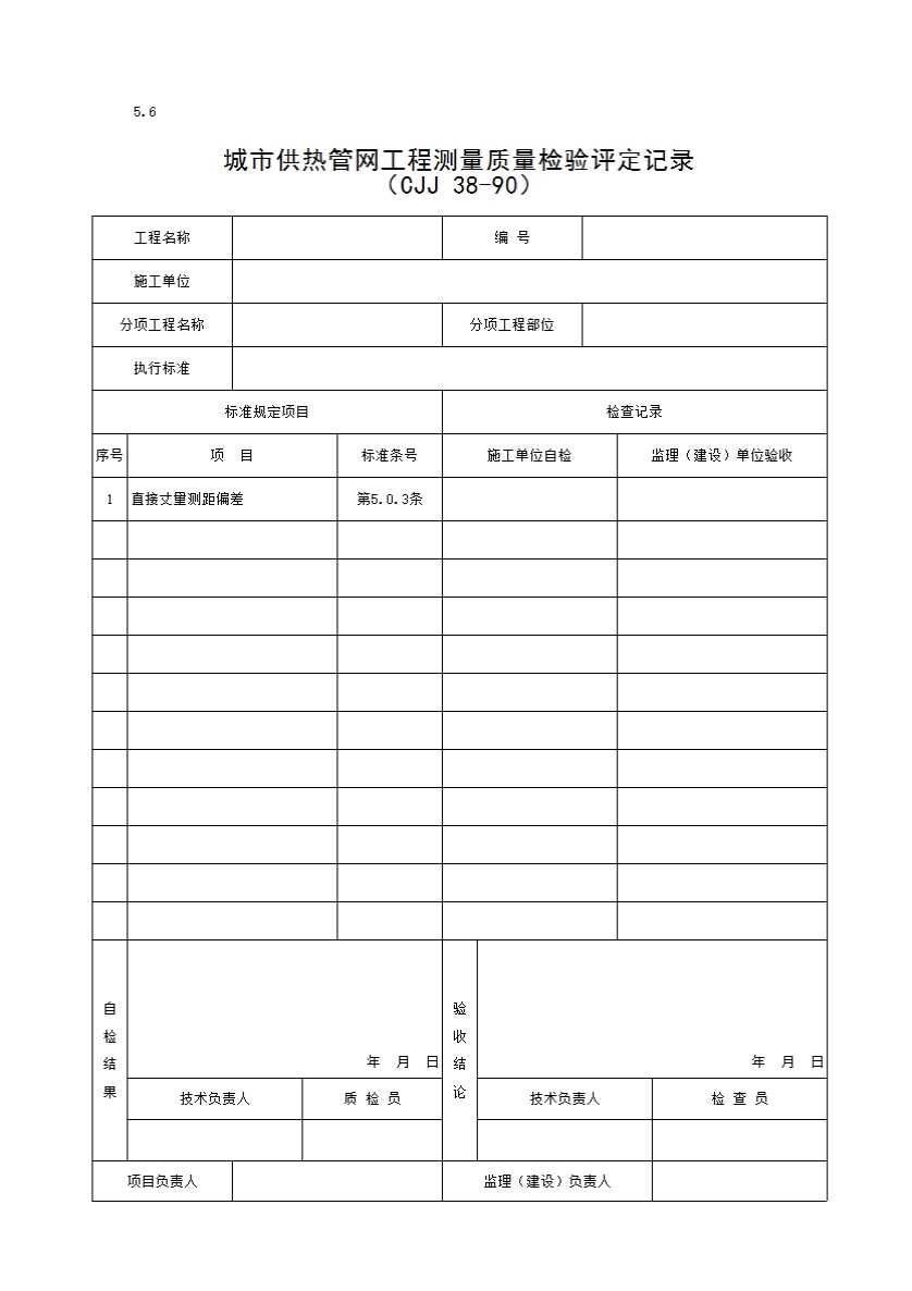 表格名称:5.6 城市供热管网工程测量质量检验评定记录