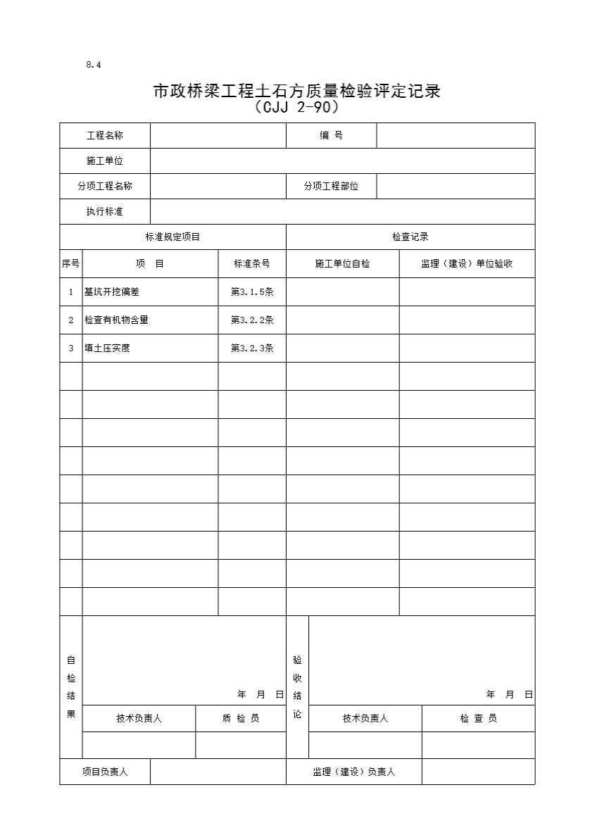 8.4 市政桥梁工程土石方质量检验评定记录
