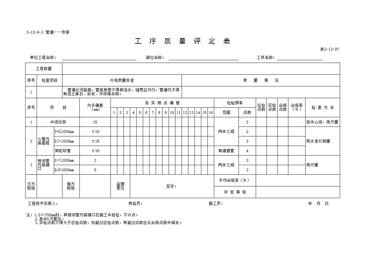 CJJ1-90/CJJ2-90/CJJ3-90 工序评定表