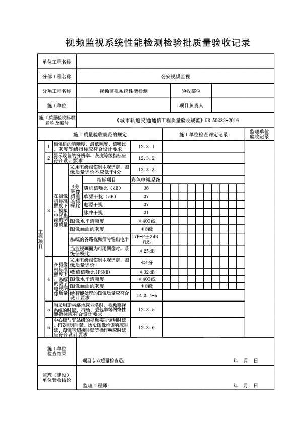 表格名称:视频监视系统性能检测检验批质量验收记录