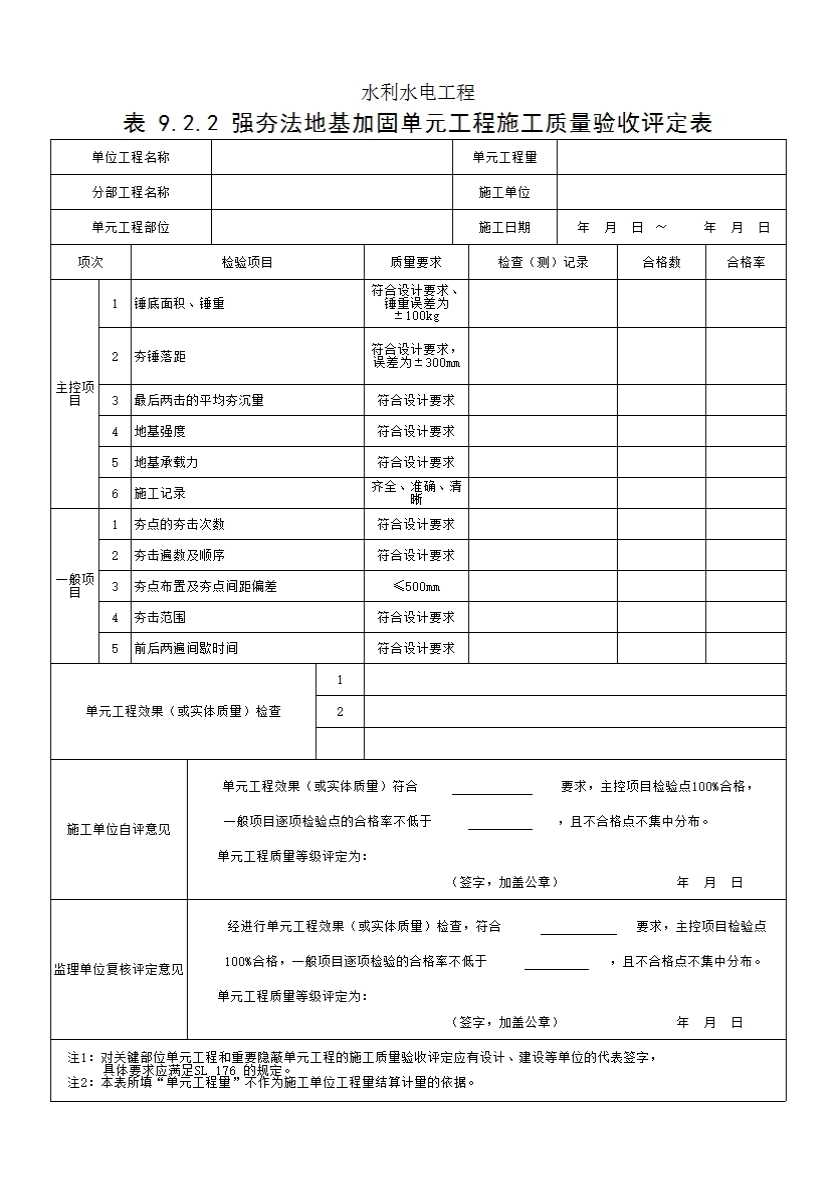 表 9.2.2 强夯法地基加固单元工程施工质量验收评定表