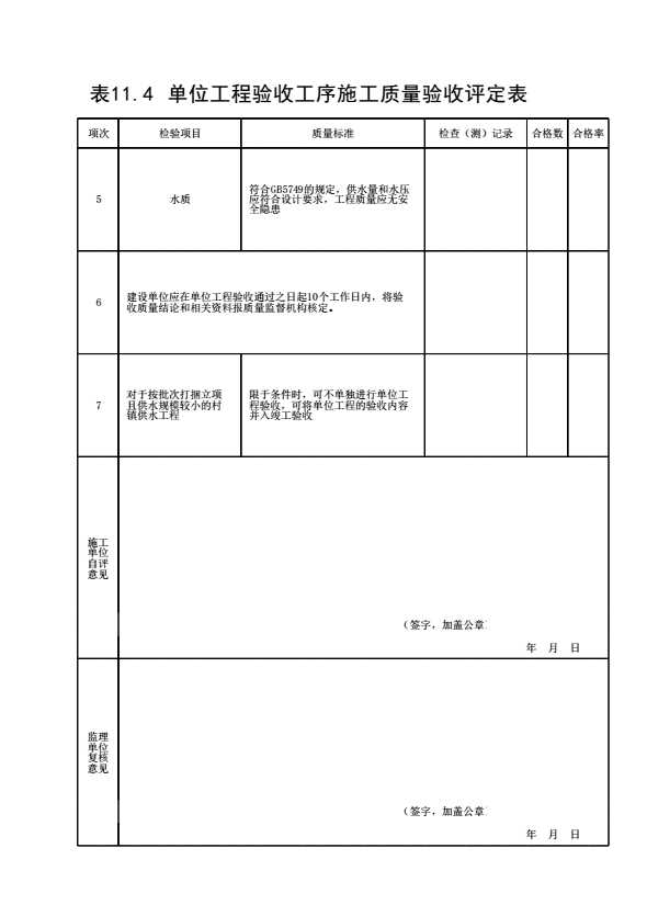11.4 单位工程验收工序施工质量验收评定表