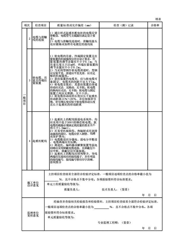 表12.4.6 桥式起重机电气设备安装单元工程施工质量验收表