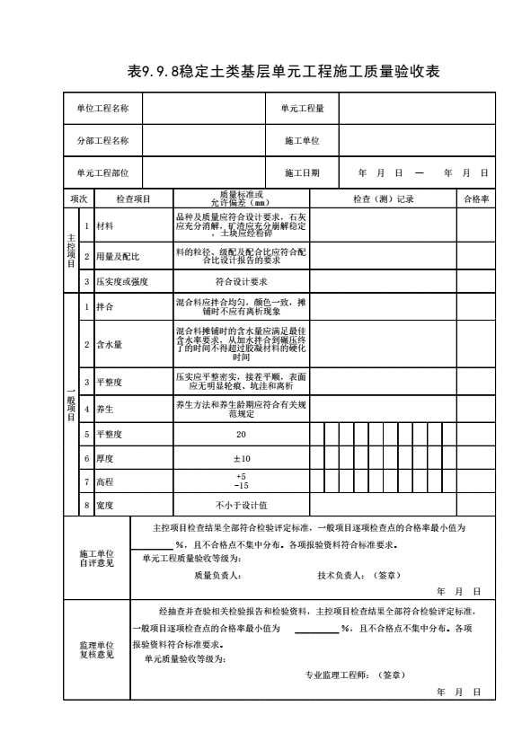 表9.9.8 稳定土类基层单元工程施工质量验收表