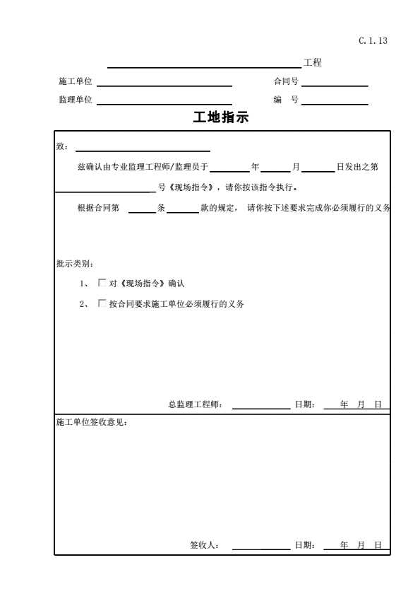 表格名称:C.1.13 工地指示