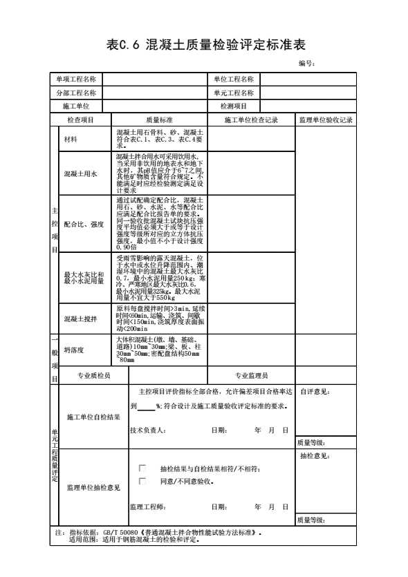 表格名称:表C.6 混凝土质量检验评定标准表