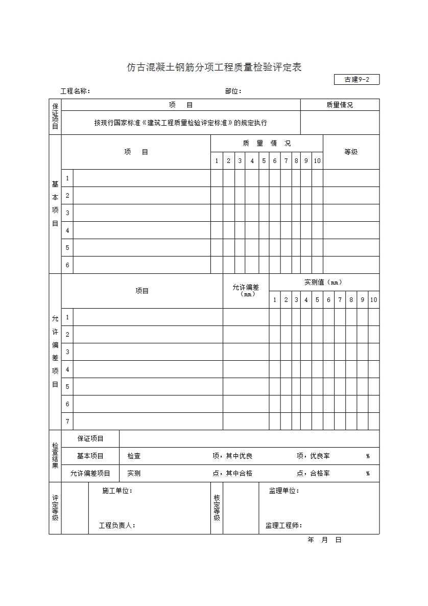 表格名称:仿古混凝土钢筋分项工程质量检验评定表