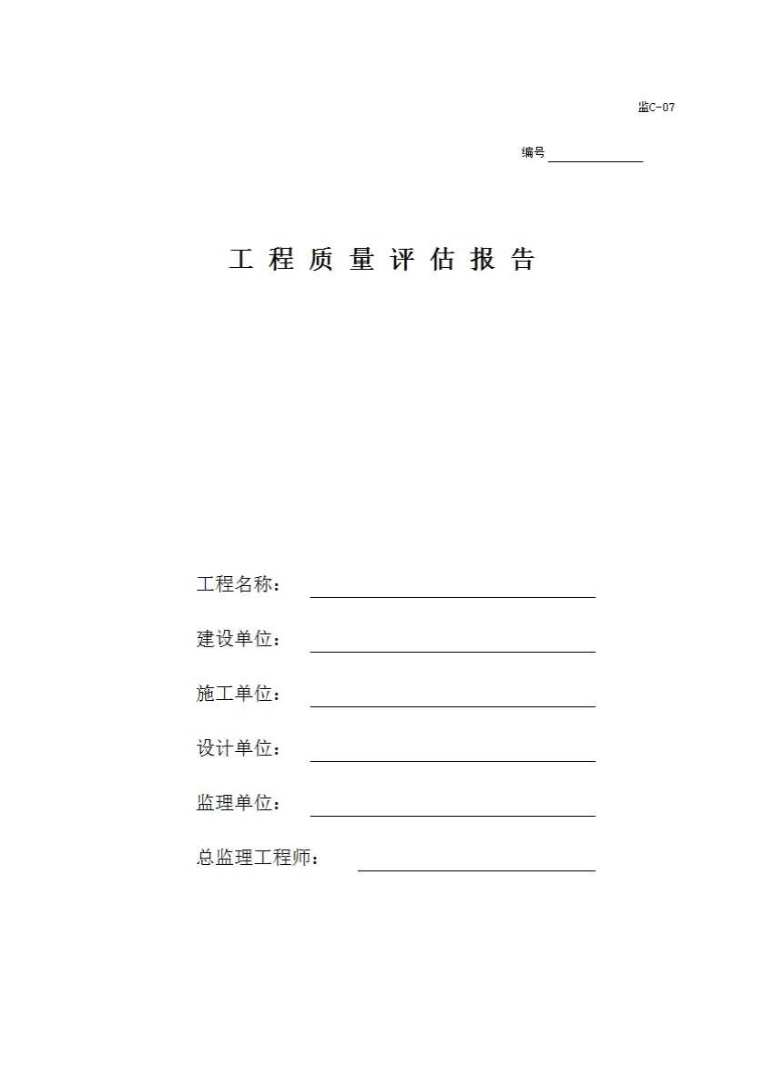 表格名称:监C—07工 程 质 量 评 估 报 告