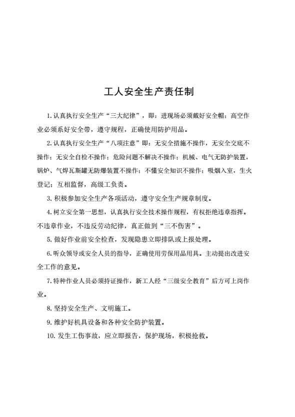 工人安全生产责任制