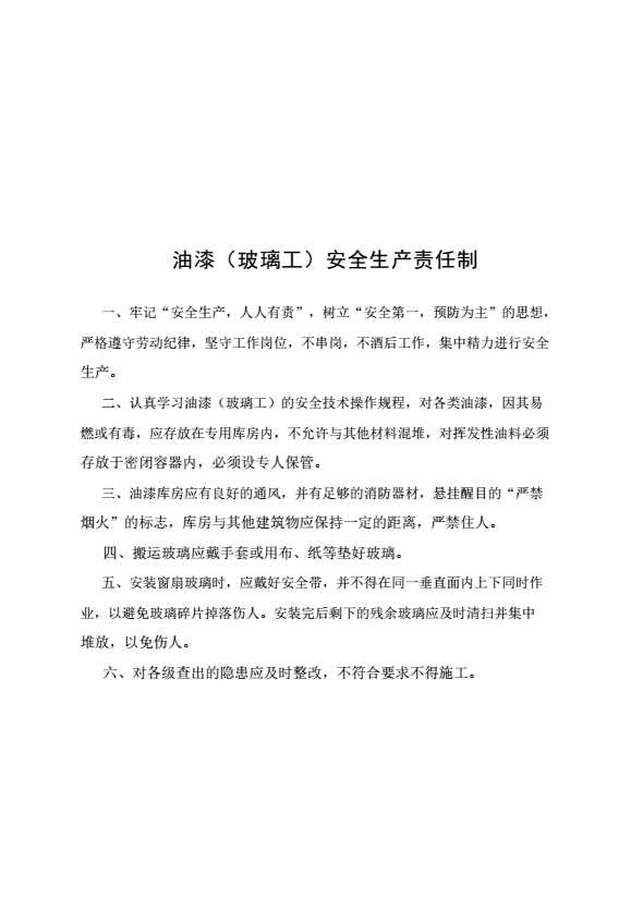 油漆(玻璃工)安全生产责任制
