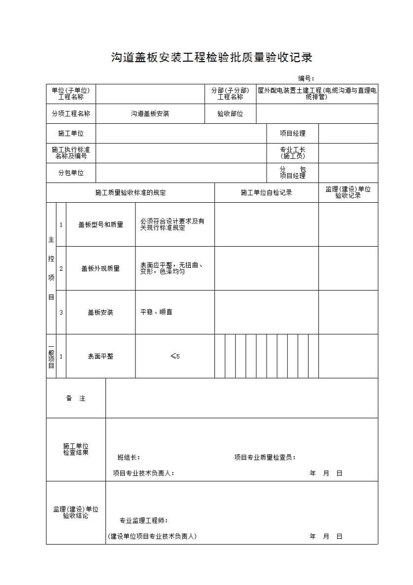 表格名称:沟道盖板安装工程检验批质量验收记录