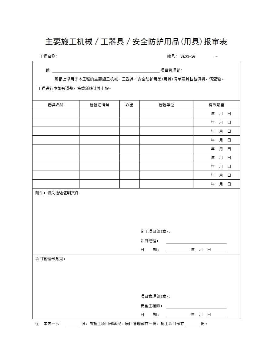 SAQ3 主要施工机械/工器具/安全防护用品(用具)报审表
