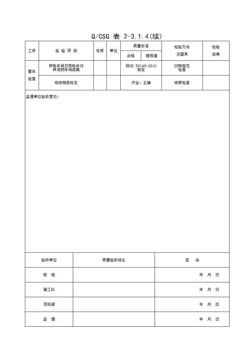 QCSG 表 2-3.1.4 管形母线安装 分项工程质量验收记录表