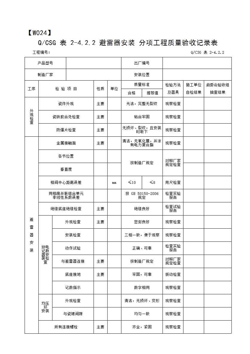 QCSG 表 2-4.2.2 避雷器安装 分项工程质量验收记录表