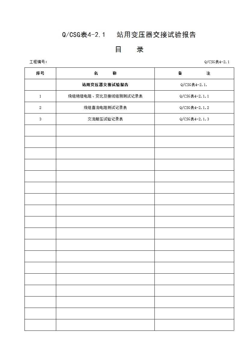 表格名称:QCSG 表 4-2.1 站用变压器交接试验报告