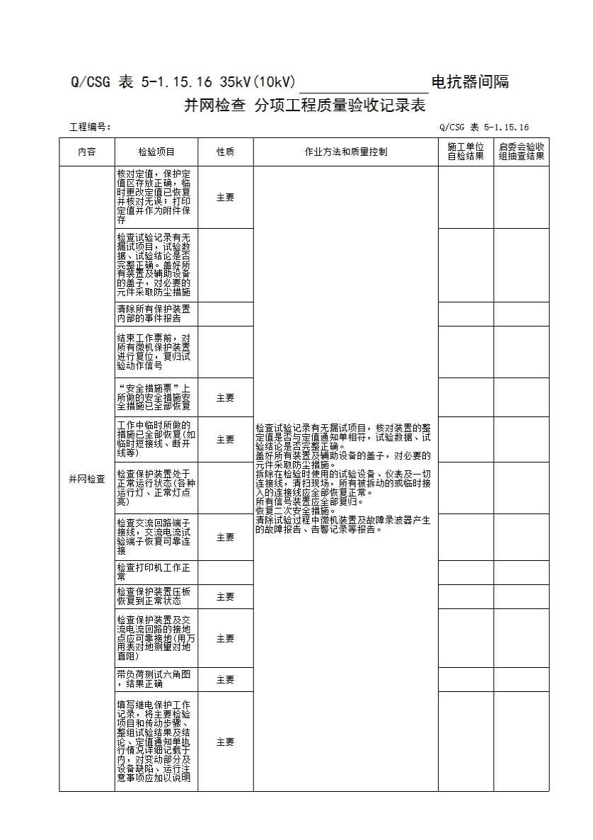 QCSG 表 5-1.15.16 35kV(lOkV)______电抗器间隔并网检查 分项工程质量验收记录表