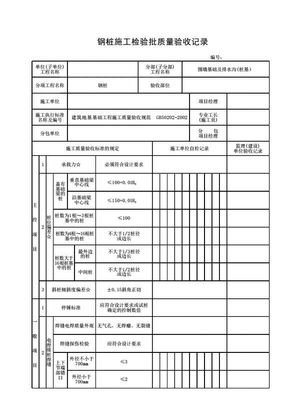钢桩施工检验批质量验收记录