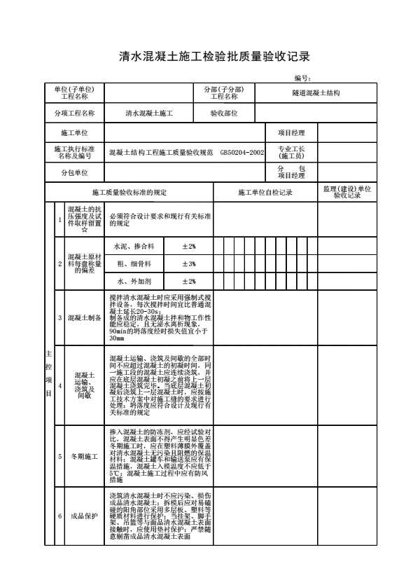 表格名称:清水混凝土施工检验批质量验收记录