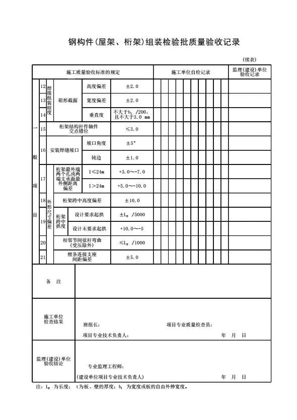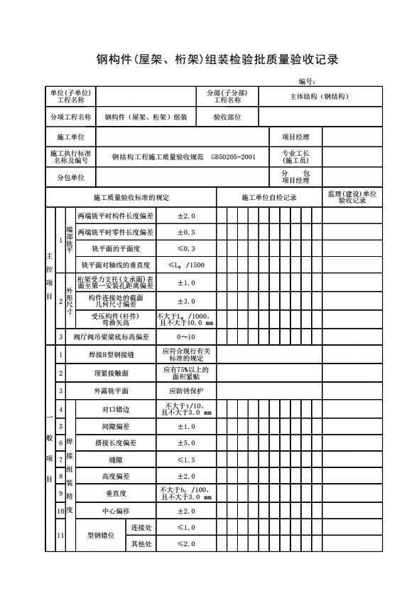表格名称:钢构件(屋架、桁架)组装检验批质量验收记录