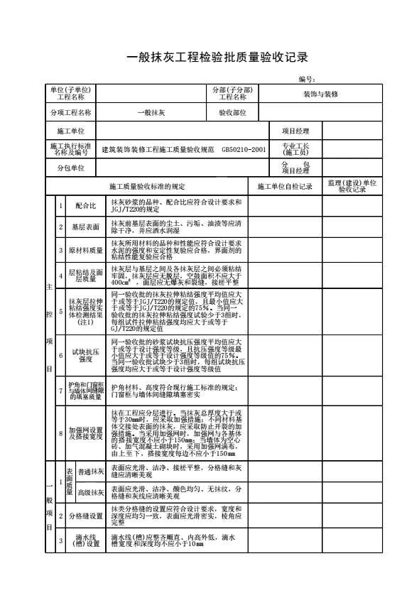 表格名称:一般抹灰工程检验批质量验收记录