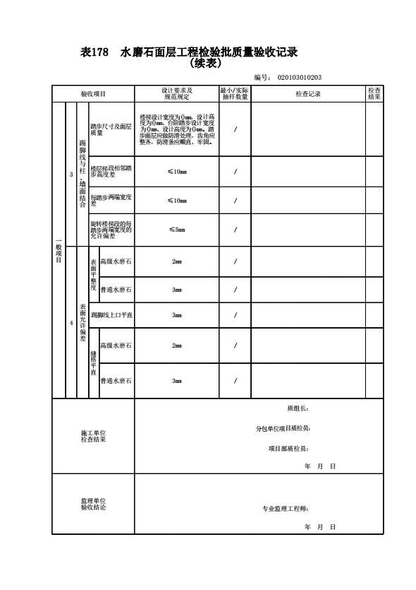 表格名称:020103010203 水磨石面层工程检验批质量验收记录