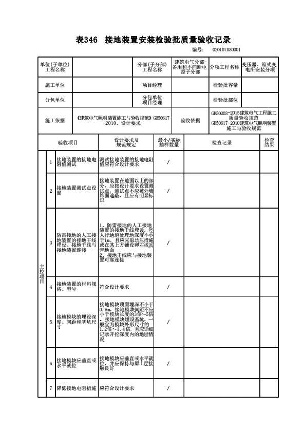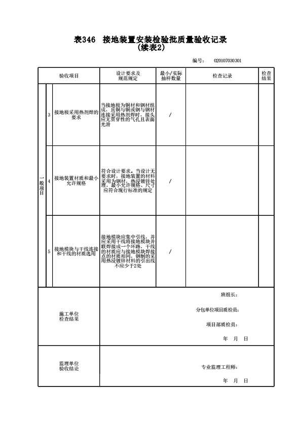 表格名称:020107030301 接地装置安装检验批质量验收记录